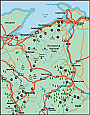 woodland, past valley and upland lakes. They visit historic