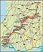 dips into wooded valleys, and eventually passes alongside the